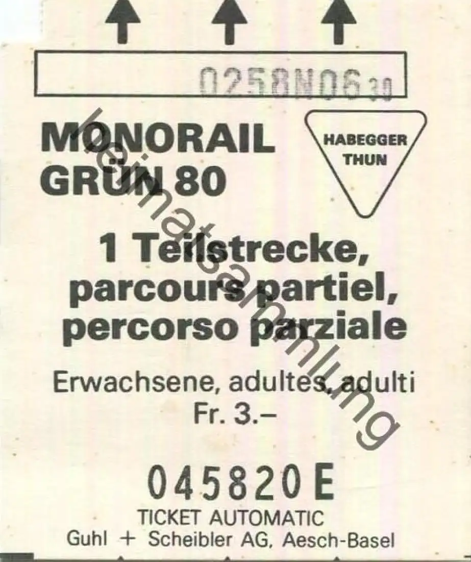 Schweiz - Basel - Monorail Grün 80 - 1 Teilstrecke - Fahrkarte (G62669)