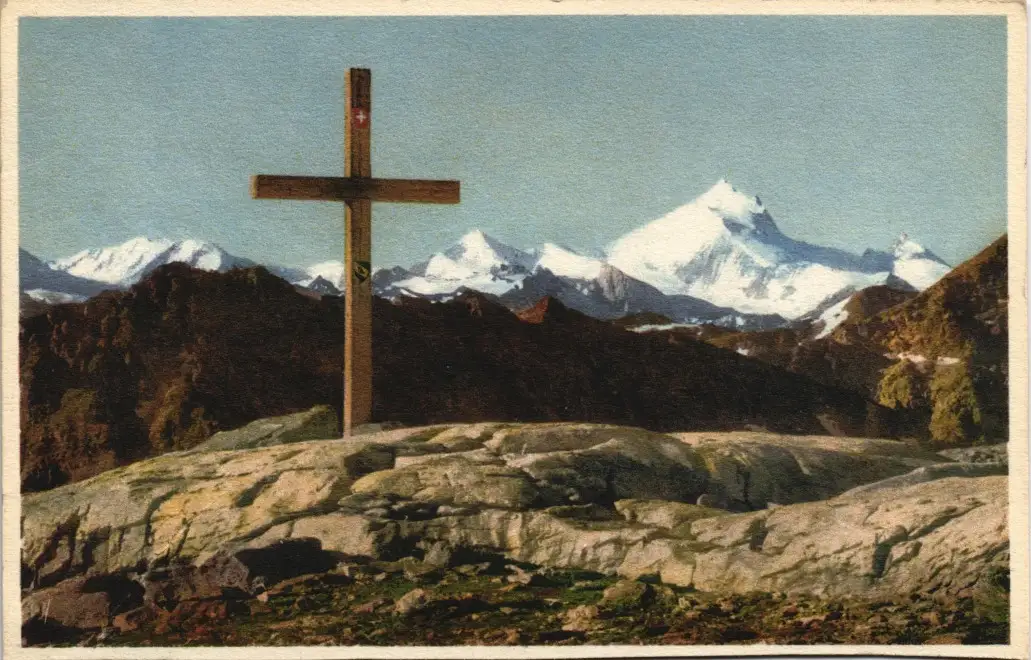 .Schweiz Bergkreuz Lötschenpass Lyskamm-Brunegghorn-Weisshorn-Rothorn 1930