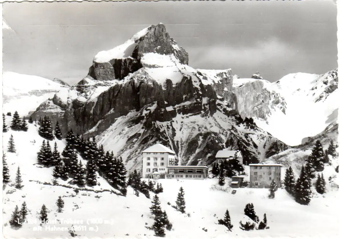 Schweiz, Engelberg, Hotel Trübsee mit Hahnen, 1944 gebr. sw-AK