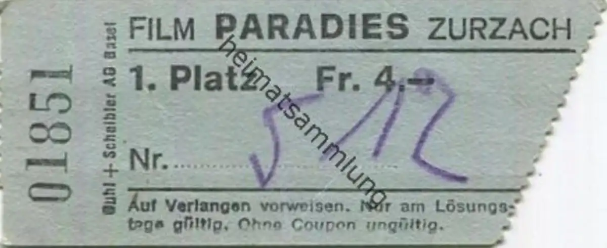 Schweiz - Film Paradies Zurzach - Kinokarte 1. Platz (G58082)