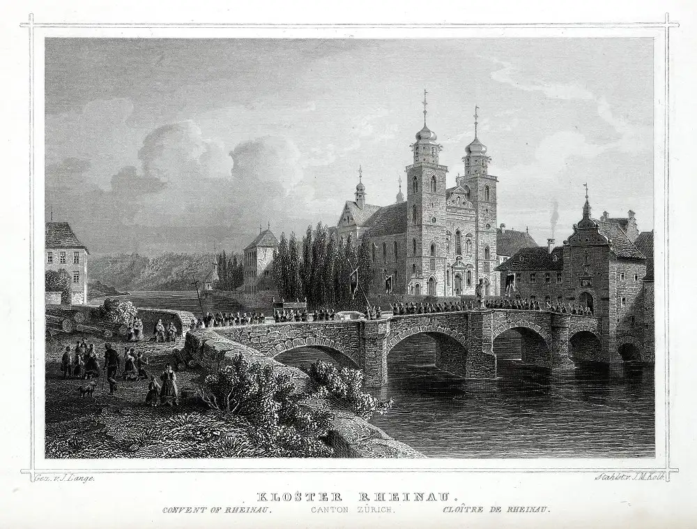 Schweiz: Kloster Rheinau (Kanton Zürich) Originaler Stahlstich um 1860