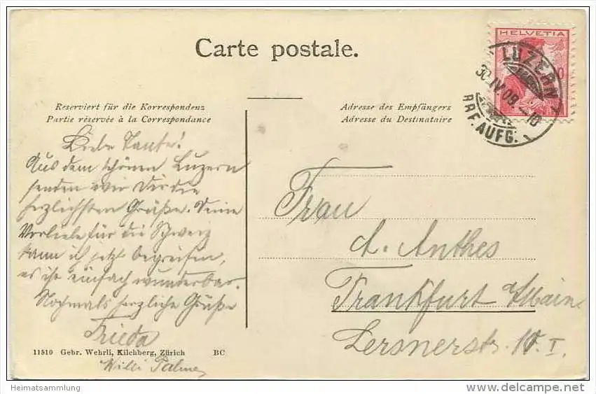Schweiz - Luzern - Hauptpost und Theaterquai - Verlag Gebr. Wehrli Kilchberg Zürich (G33246) gel. 1909