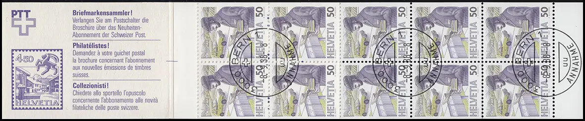 Schweiz Markenheftchen 0-84, Postbeförderung: Der Postbote 1988, ET-O Bern