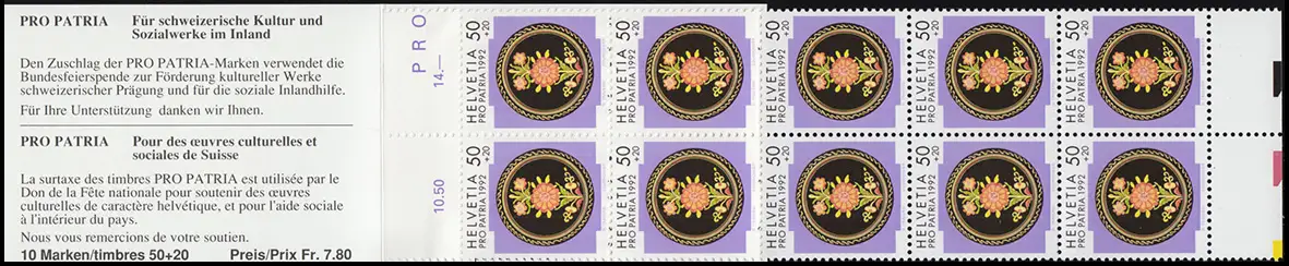 Schweiz Markenheftchen 0-92, Pro Patria Volkskunst 1992, **