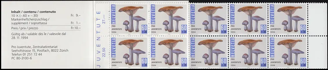 Schweiz Markenheftchen 0-99, Pro Juventute Pilze 1994, **