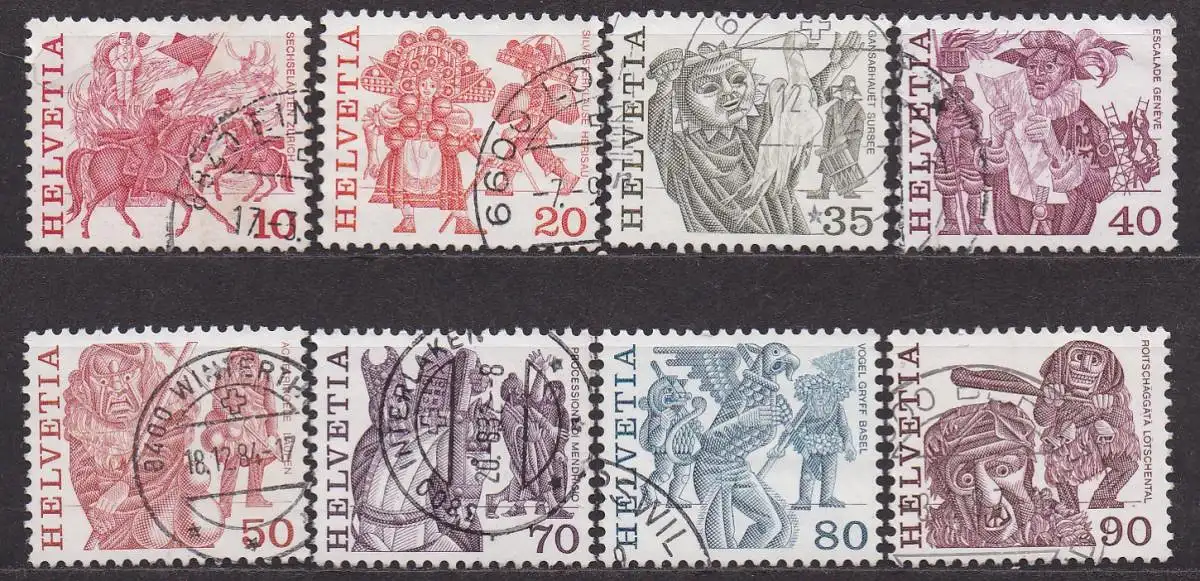 Schweiz, Mi-Nr. 1101, 1102, 1103, 1104, 1105, 1106, 1107 + 1108 gest., Volksbräuche