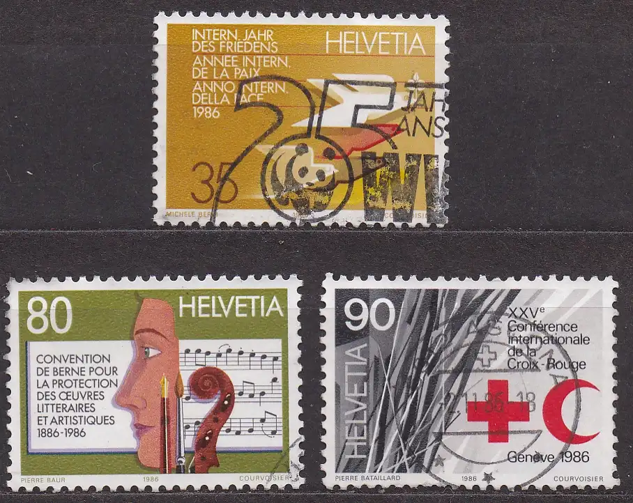 Schweiz, Mi-Nr. 1327, 1329 + 1330 gest., Jahresereignisse 1986 (II)