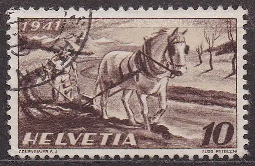 Schweiz, Mi-Nr. 386 gest., Pflügender Bauer