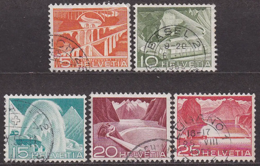 Schweiz, Mi-Nr. 530, 531, 532, 533 + 534 gest., Landschaften und techn. Motive