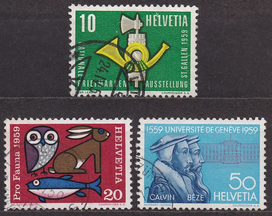 Schweiz, Mi-Nr. 669, 670 + 671 gest., Jahresereignisse 1959