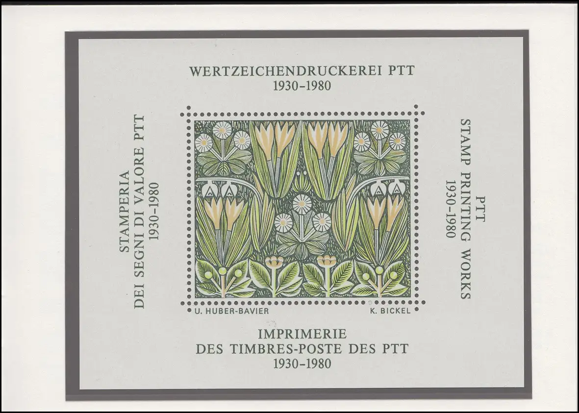 Die Dienstleistungen der PTT in der Druckschrift "Die PTT, Ihr Partner Tag für Tag" in deutscher Sprache (3a) mit 1180-1183 im Viererblock und mit Vignettenblock Frühling.