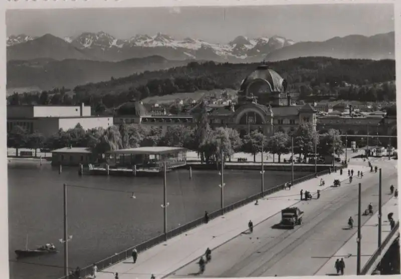 Schweiz - Schweiz - Luzern - Bahnhof mit Alpen - ca. 1960