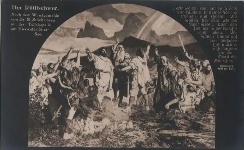 Schweiz - Schweiz - Vierwaldstättersee - Tellskapelle, Wandgemälde, Rütlischwur - ca. 1950