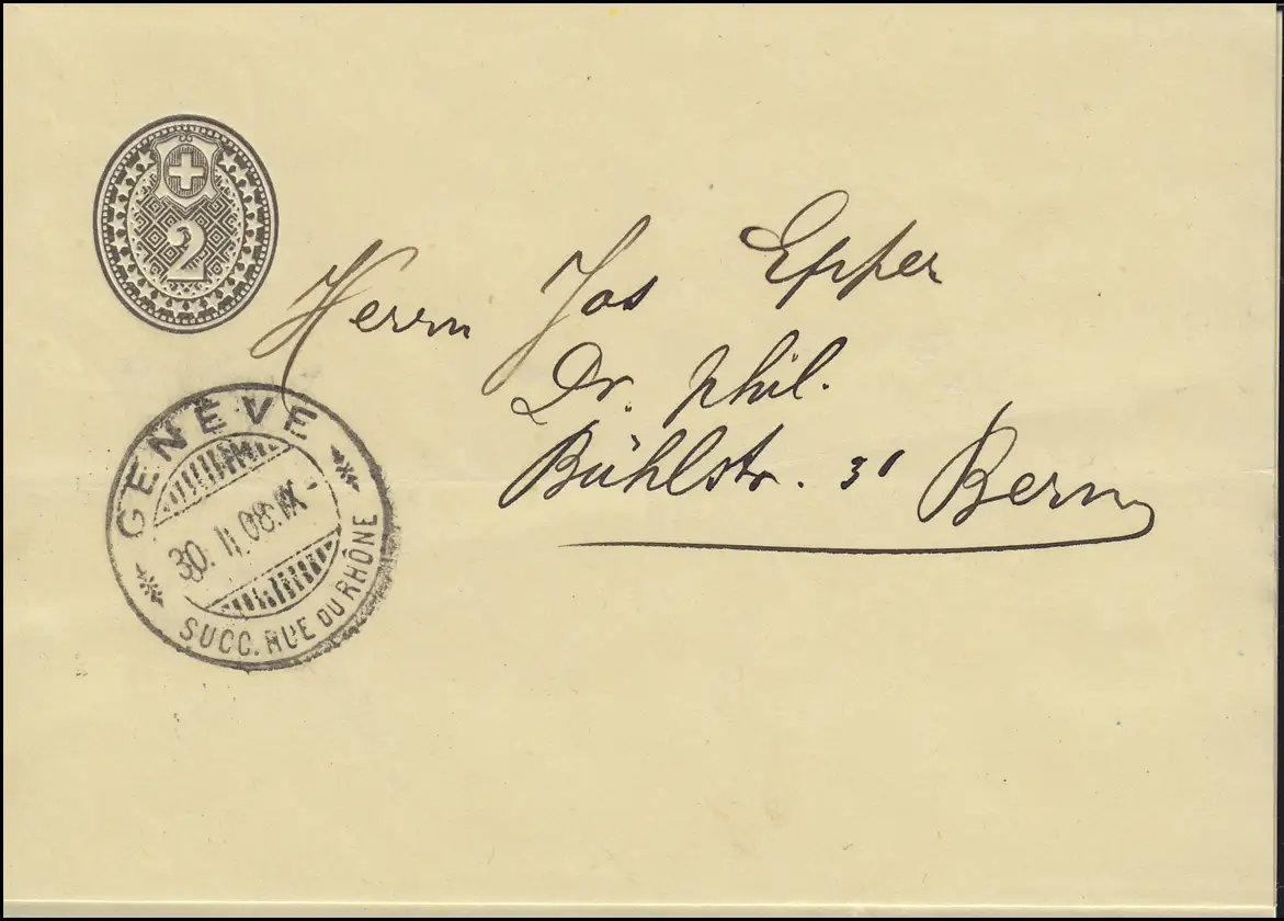 Schweiz Streifband S 16 Ziffer im Oval 2 C.schwarz GENF 30.2.08 nach Bern