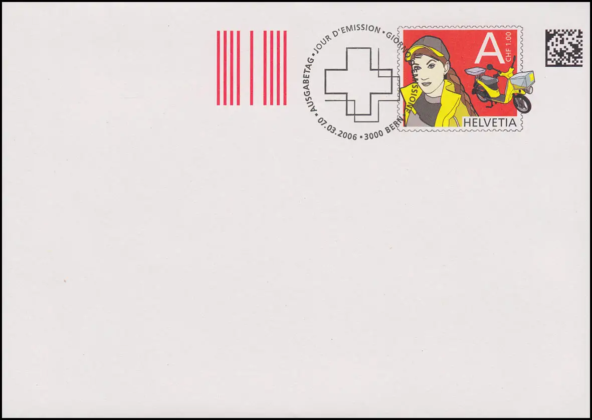 Schweiz Umschlag U 33A Dauerausgabe A-Post 1,00 CHF 2006, ESSt Bern 7.3.2006