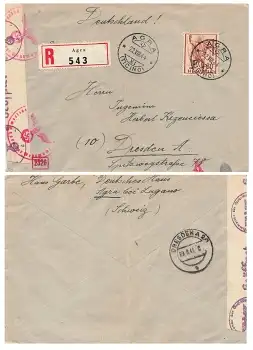 Schweiz Zensur Geöffnet Oberkommando der Wehrmacht R-Brief o Agra 22.8.1944 nach Dresden