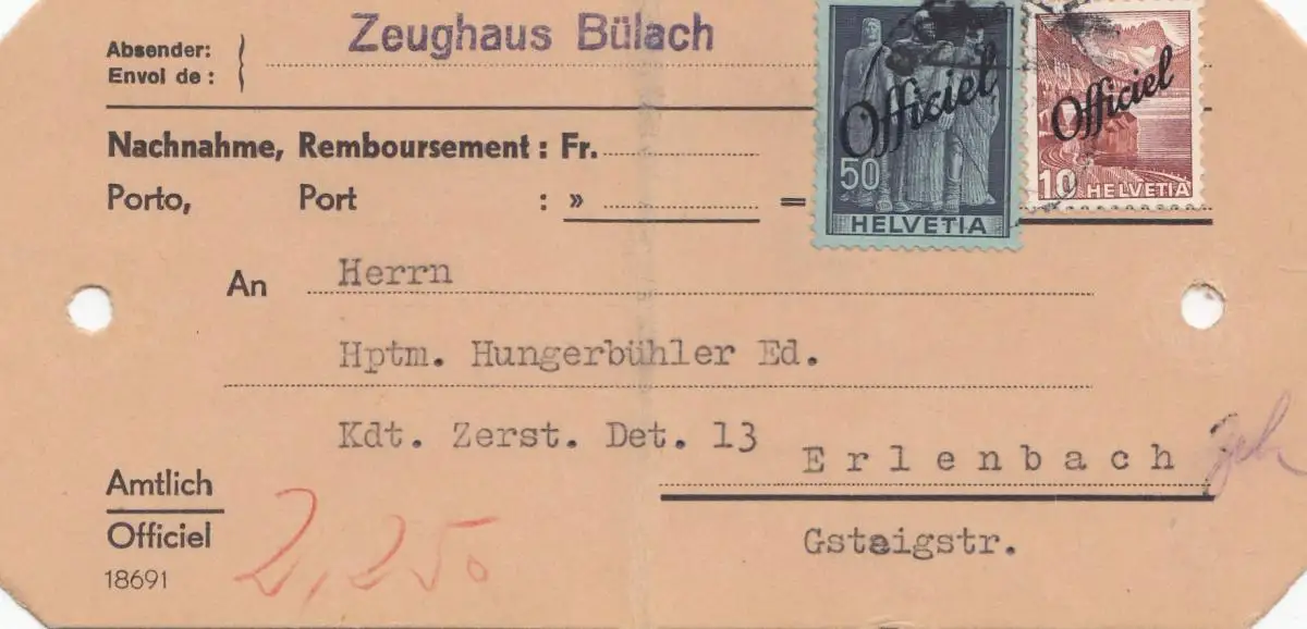 Schweiz: Zeughaus Bülach als Nachnahme nach Erlenbach