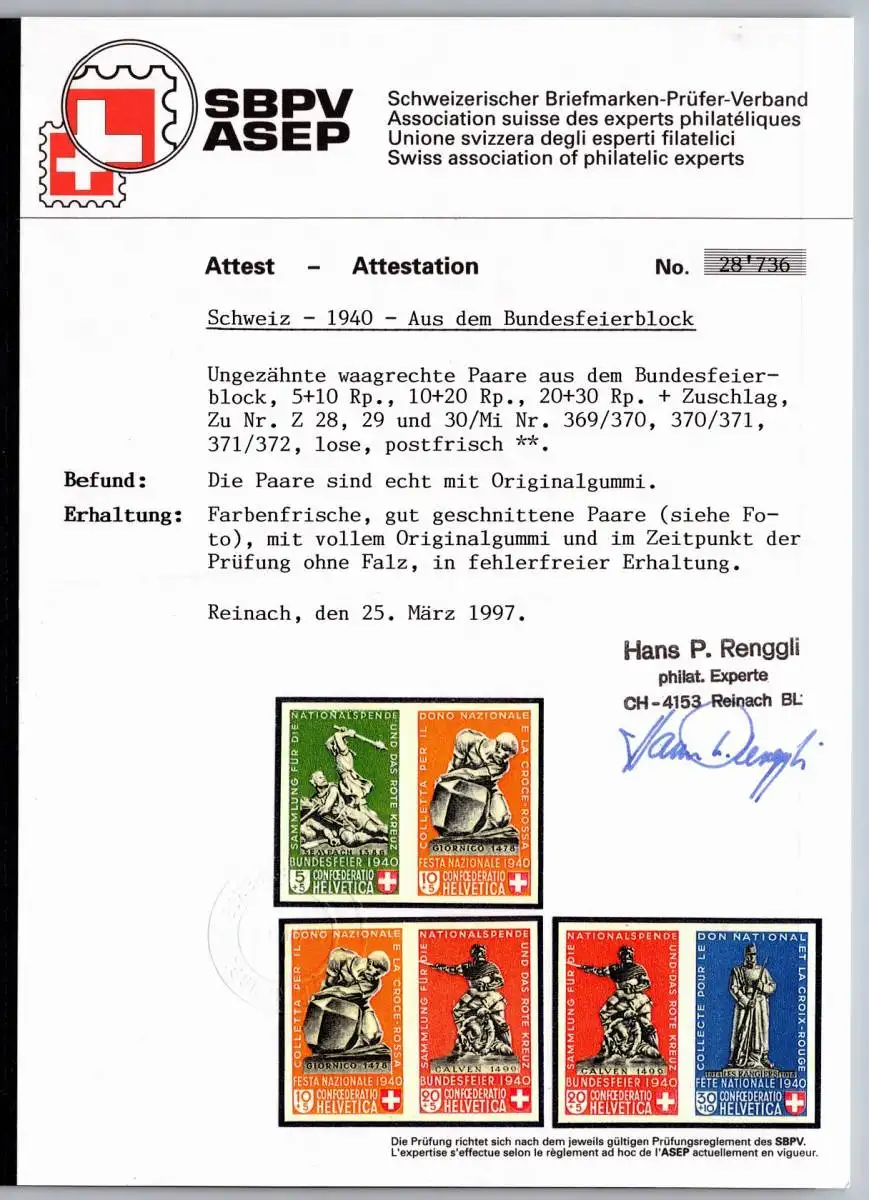 Schweiz Zusammendrucke Zumstein Z28-Z32 postfrisch Zd Bl 5 Attest Renggli #OF144