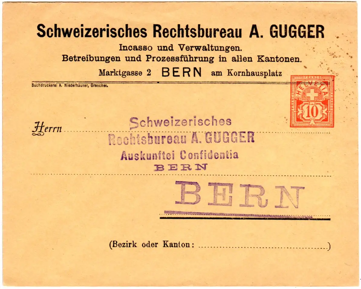 Schweiz, ungebr. 10 C. Privat Ganzsache Brief Rechtsburau Gugger Bern