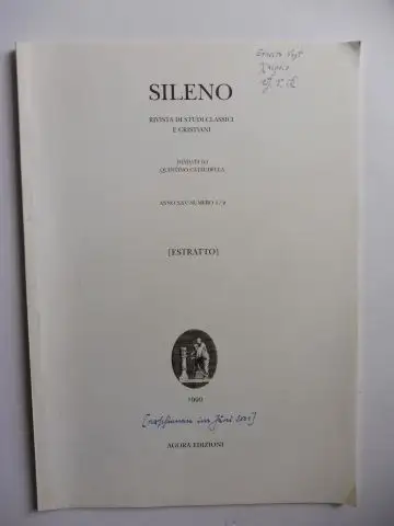 Schwertlob Korzeniowski *, Georg and Quintino Cataudella (Fondats da): Aus SILENO RIVISTA DI STUDI CLASSICI E CRISTIANI ANNO XXV-NUMERO 1/2: THE CLAUSULA-TYPE ET MIHI DAMON AND THE CHRONOLOGY OF VIRGIL`S ECLOGUES. + AUTOGRAPH *.