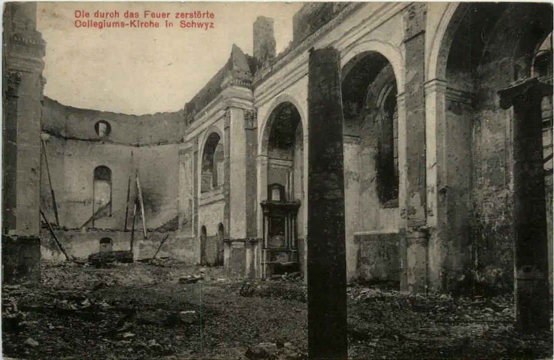 Schwyz- Durch das Feuer zerstörte Collegiums Kirche -466150