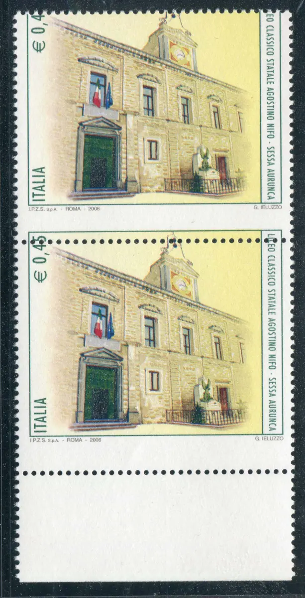 Scuole d'Italia Liceo Nifo Sorte verschobene Verzahnung Vollgummi - MHN - - Scuole d'Italia Liceo Nifo Nr. 2869 vertikales Paar mit stark nach unten verschobener horizontaler Verzahnung b. von f. (Sass. spec. Nr. 2518 Ea) Cod. 892/14