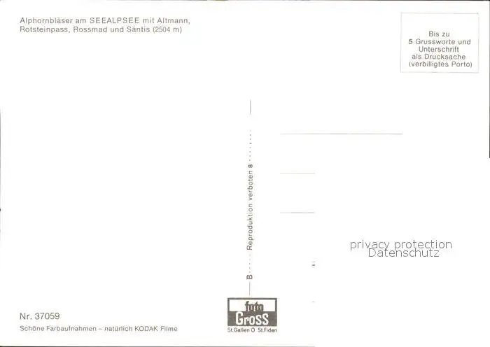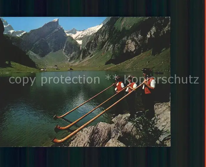 Seealpsee Alphornblaeser Schwende postalisch nicht gelaufen nach 1965 Erhaltung siehe scans Alte Ansichtskarte Postkarte hz Woerer