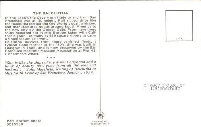 Segelschiffe The Balclutha Schiffe postalisch nicht gelaufen nach 1965 Erhaltung siehe scans Alte Ansichtskarte Postkarte Paoletti