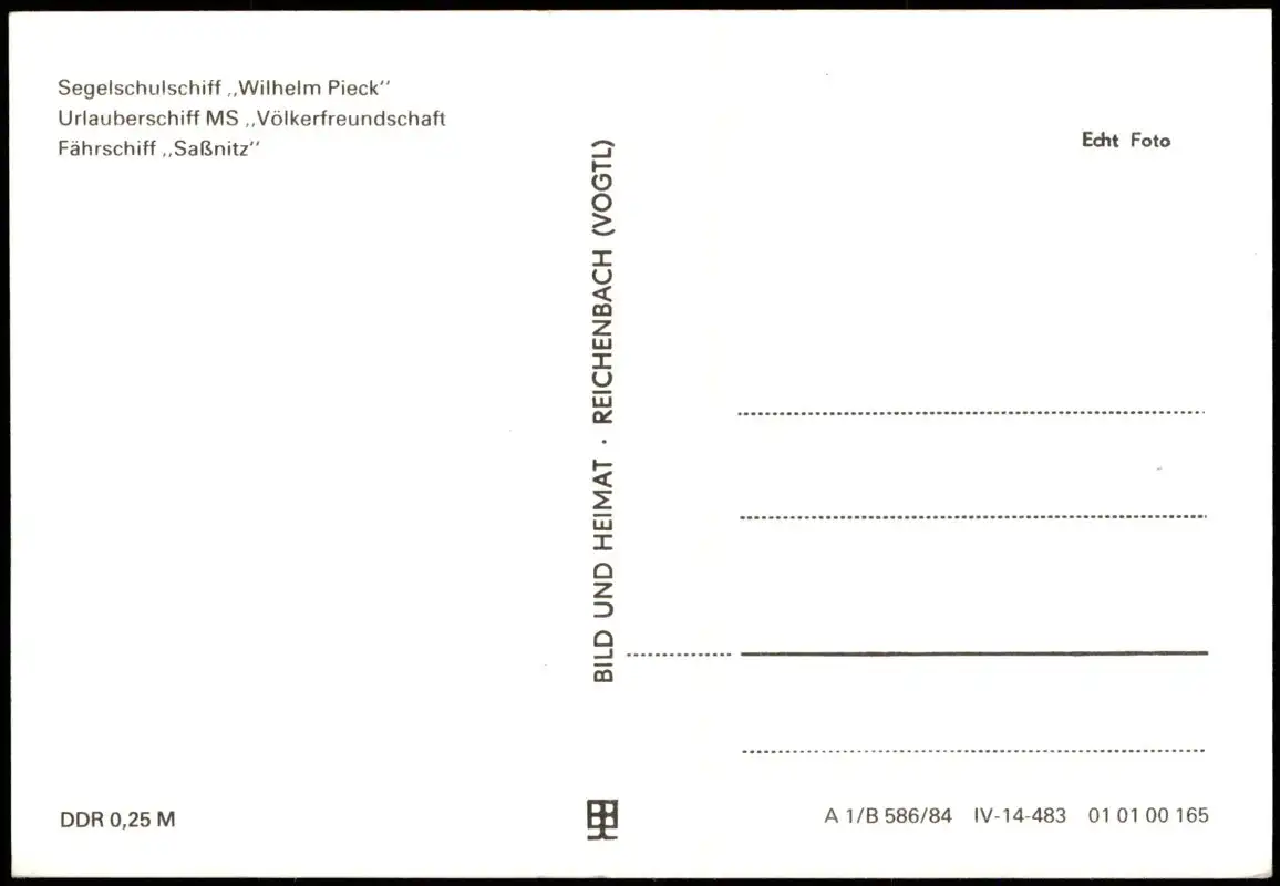Name: Segelschulschiff Wilhelm Pieck, MS Völkerfreundschaft, Fährschiff Saßnitz