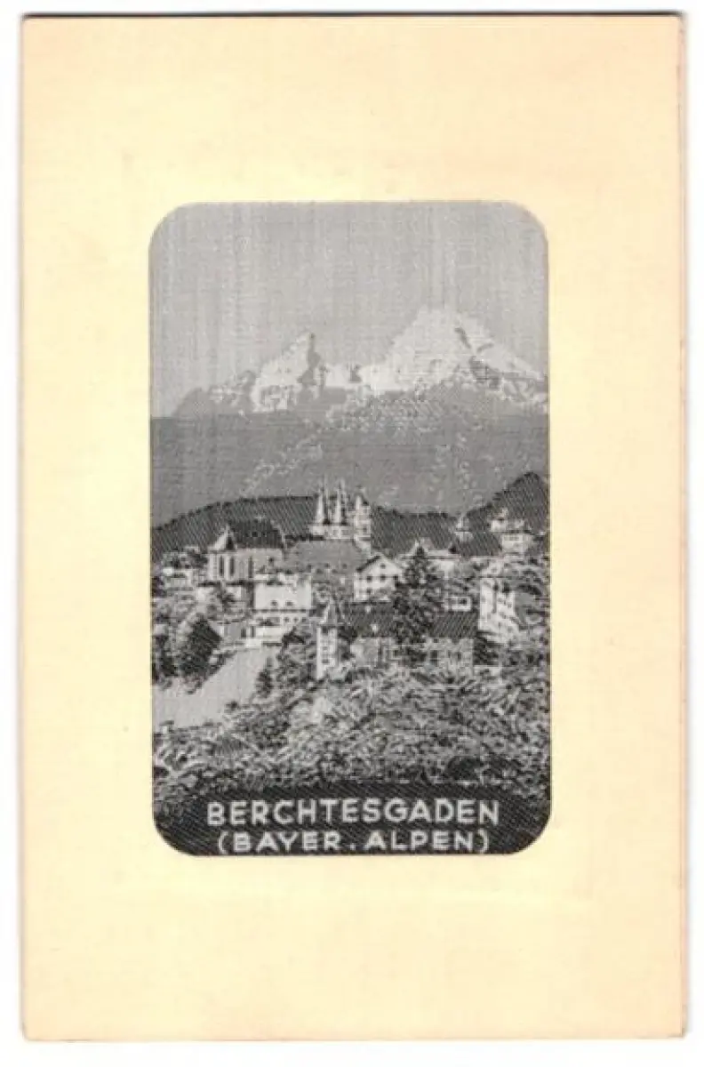 Seiden-AK Berchtesgaden /Bayer. Alpen, Ortsansicht mit Bergpanorama im Passepartout