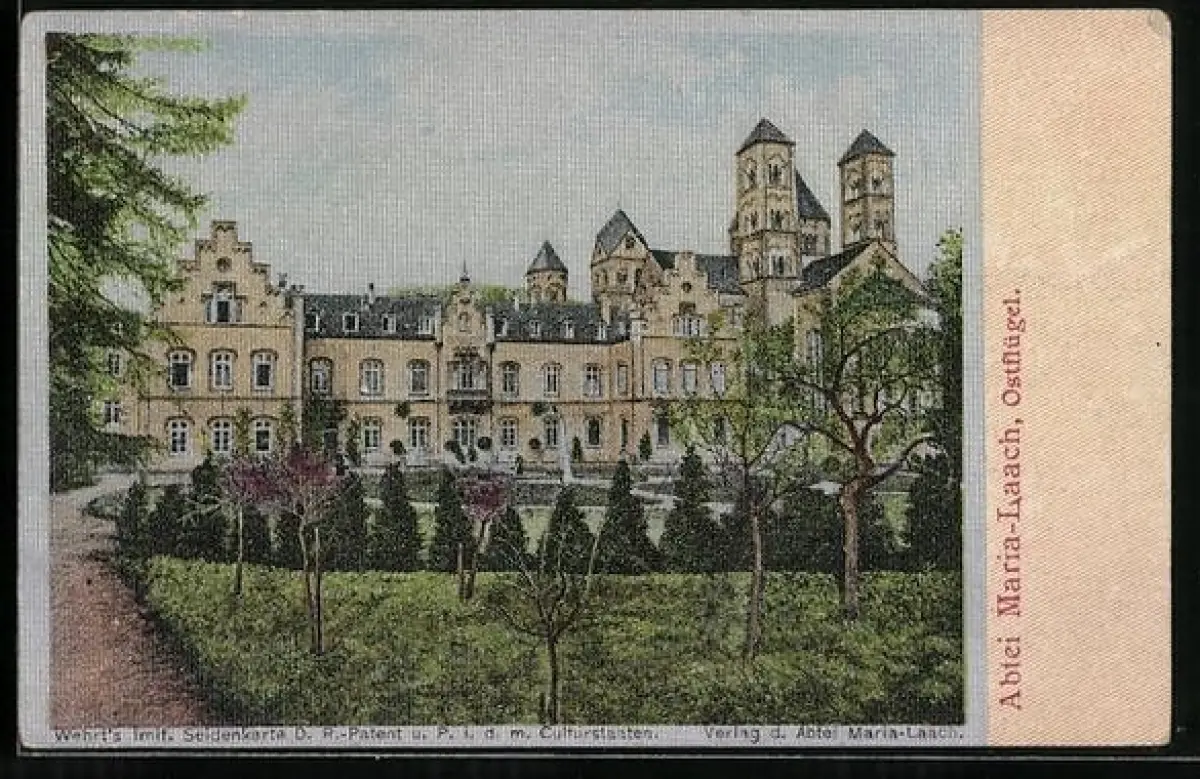 Seiden-Imitations-AK Wehr / Laacher See, Abtei Maria-Laach