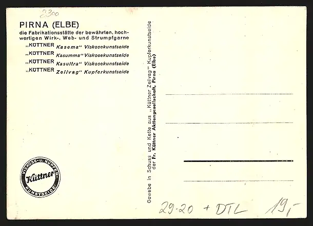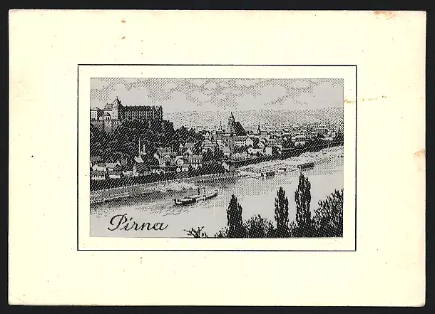 Seidenstick-AK Pirna, Panoramablick auf Elbe und Stadt