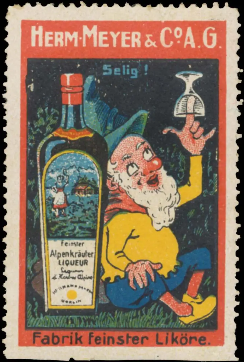 Fabrik feinster Liköre, Zwerg, Größe/Zustand: 6x4 , guter Zustand, Original alte Reklamemarke die seinerzeit für die Werbung benutzt wurde