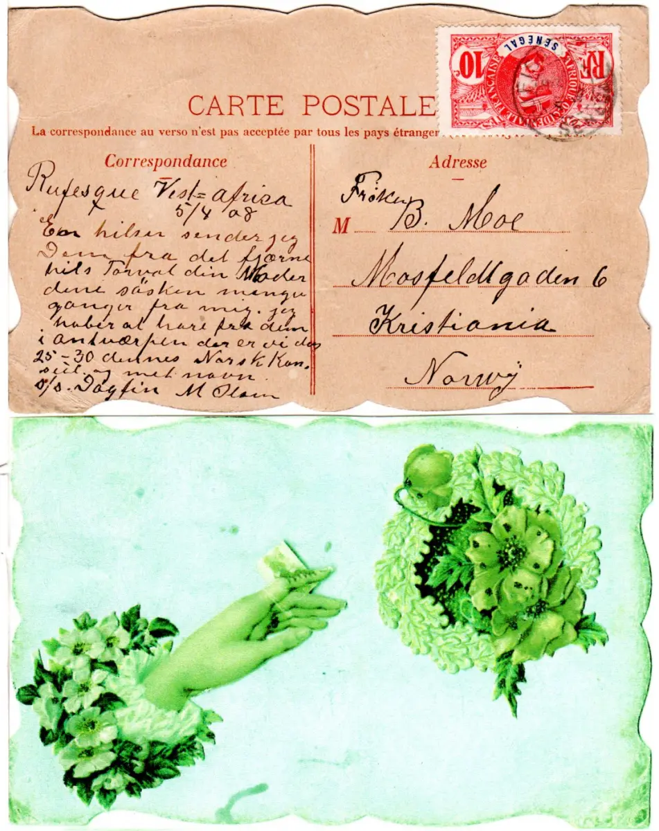 Senegal 1908, 10 C. on unusual postcard from Rufisque to Norway