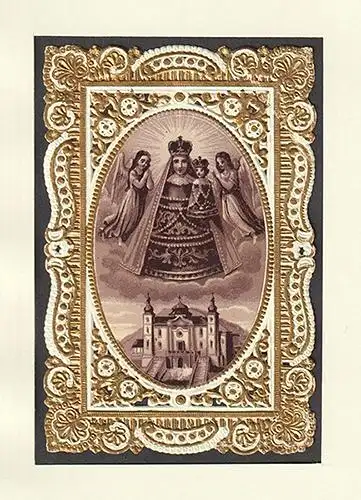 Bemerkungen: Das chromolithographische Medaillon zeigt ein Gnadenbild in reichem Gewand, flankiert von zwei betenden Engeln, darunter ist eine Ansicht einer Kirche zu sehen. Ohne Ortsnennung. Verso mit typographischem Text.