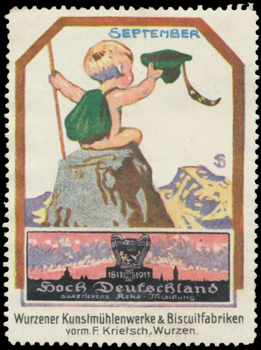 Hoch Deutschland, Befreiungskriege 1813-1913, Monatsserie, Kind, Größe/Zustand: 6x5 , guter Zustand, Original alte Reklamemarke die seinerzeit für die Werbung benutzt wurde