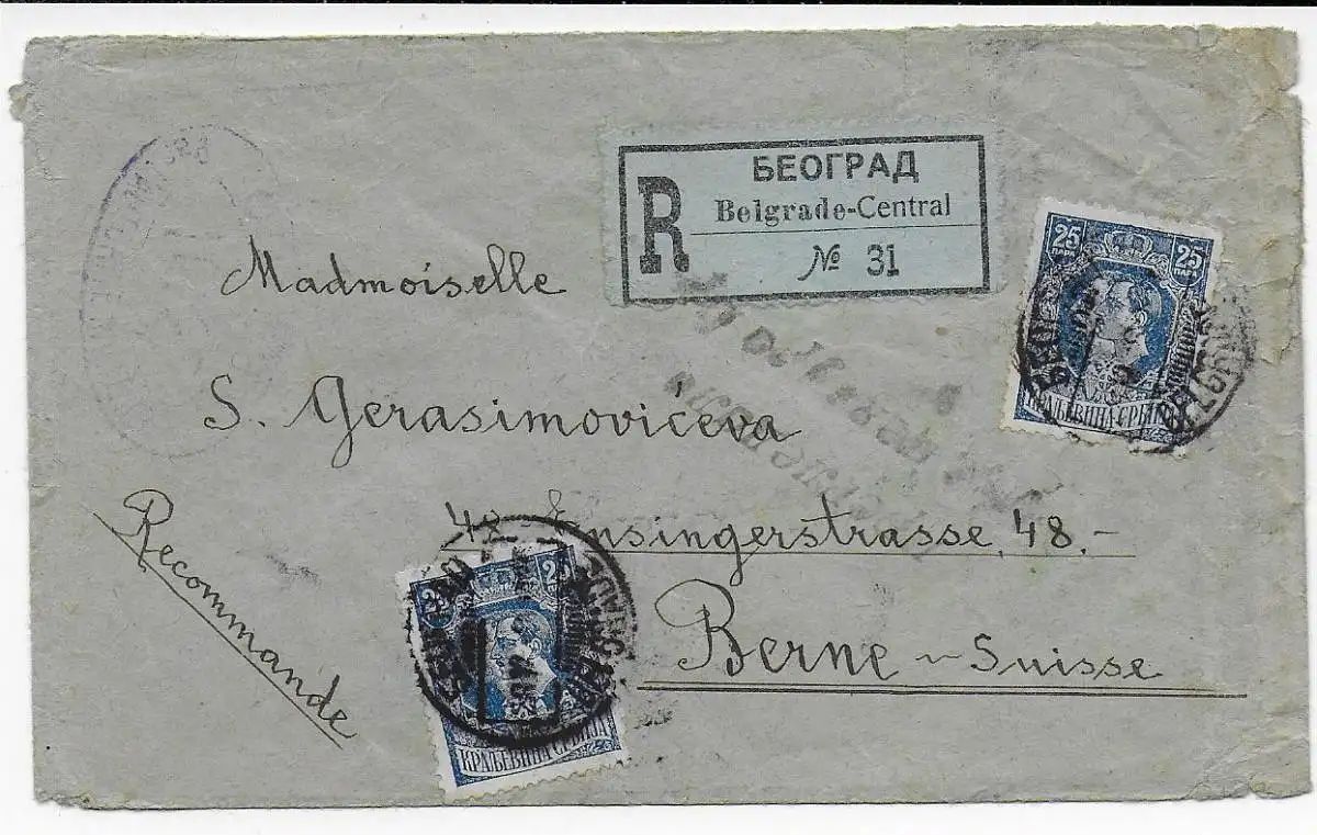 Serbien 1911: Einschreiben Belgrad nach Bern/CH, Zensur