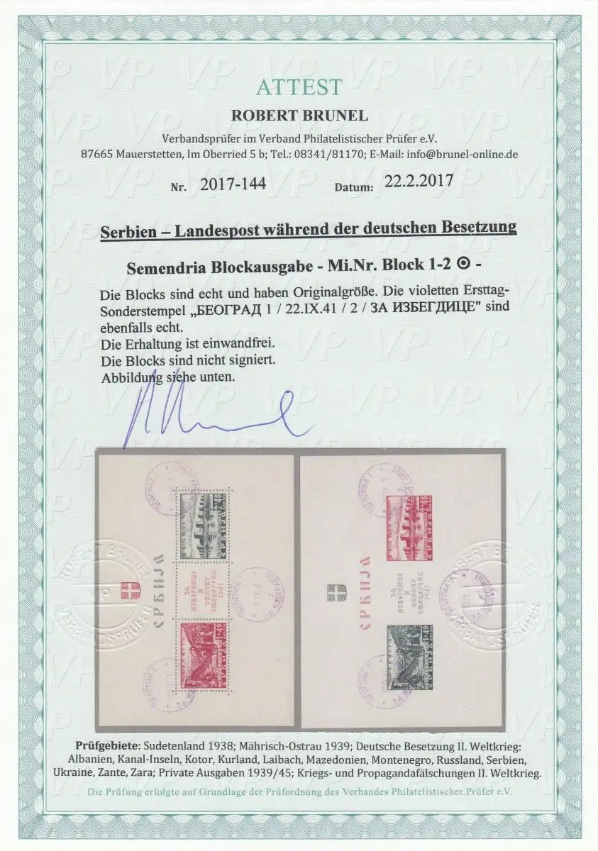 Serbien: Block 1 und 2, gestempelt, Sonderstempel