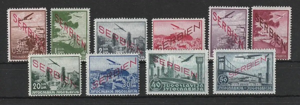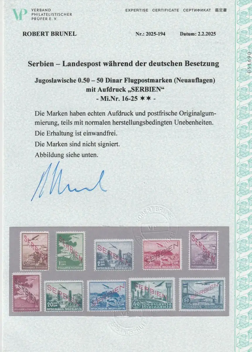 Serbien Flugpostmarken 16 - 25, **, Attest Brunel