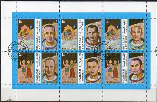 Sharjah, Mi-Nr. 1344 - 1349 gest., kompl., KlBgn., Sternzeichen u. Astronauten Apollo 9 + 10