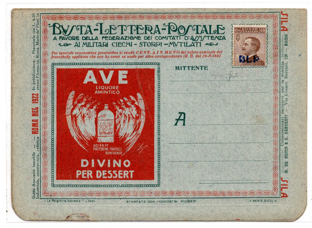 Sicilia 4 Ave Liquore - B.L.P Karton hellblau grau frankiert mit Cent. 40 Nr. 4 nicht gereist, ohne Innenblatt - Qualität: guter Zustand Cod.286/182
