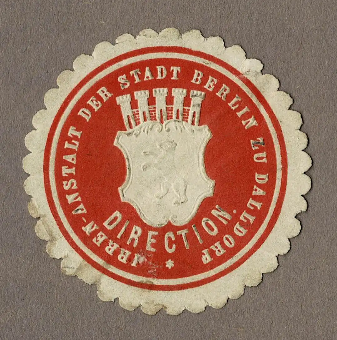 Siegelmarke IRREN-ANSTALT DER STADT BERLIN ZU DALLDORF / DIRECTION. (Wittenau)