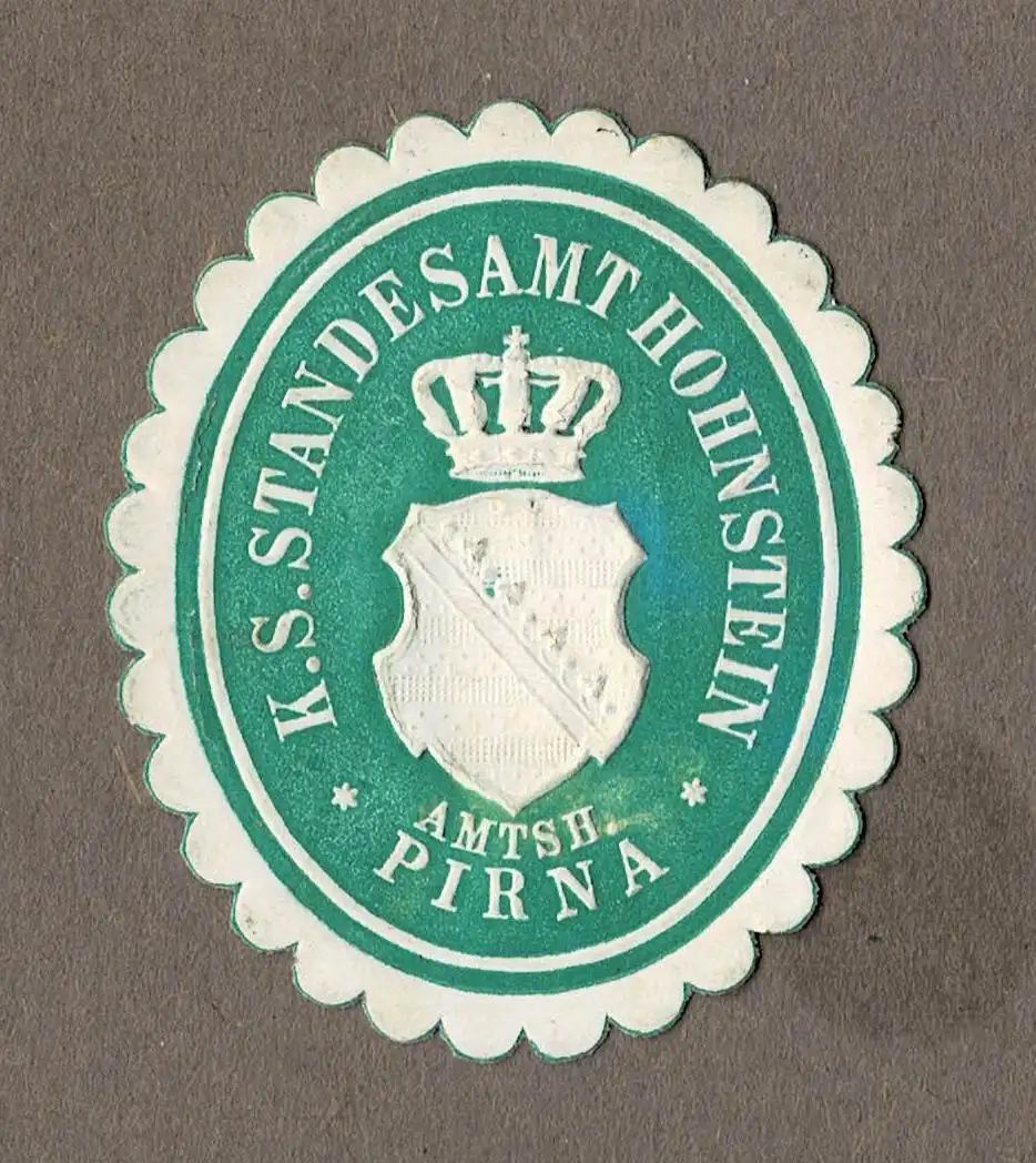 K. S. STANDESAMT HOHNSTEIN / AMTSH. / PIRNA