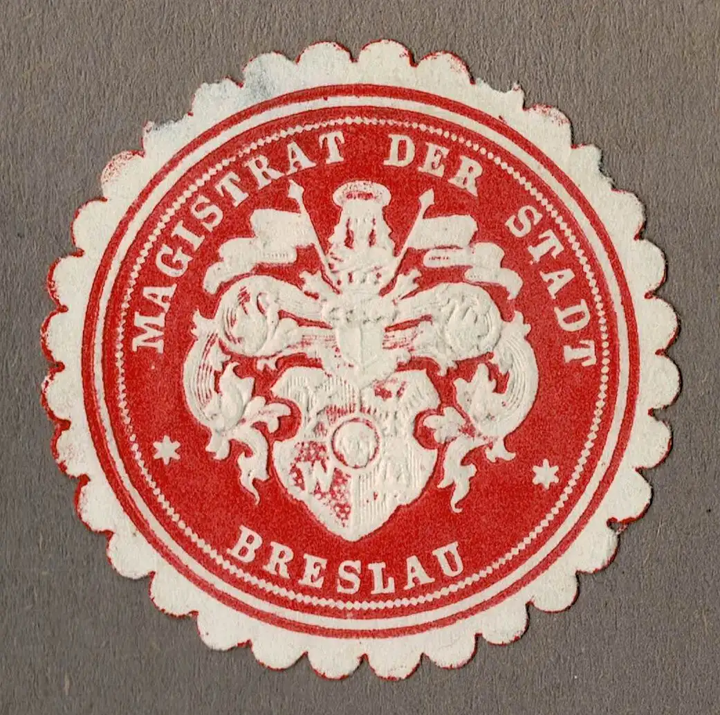 Siegelmarke Schlesien: MAGISTRAT DER STADT BRESLAU (rot)