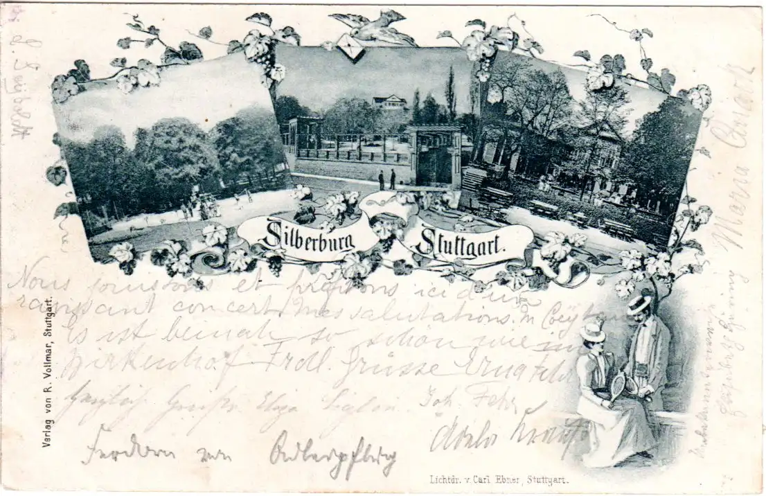 Silberburg Stuttgart m. unten rechts Paar m. Tennisschlägern, 1900 gebr. sw-AK
