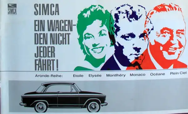 Simca Aronde Modellprogramm 1958 "Ein Wagen den nicht jeder fährt" Automobilprospekt (9697)