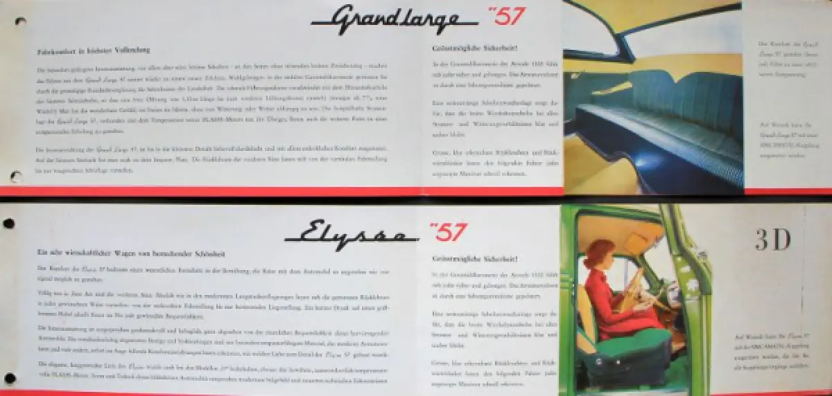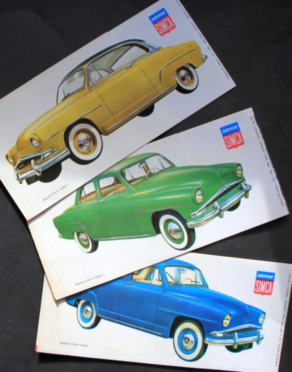 Simca Deluxe - Grand Large - Elysse Modellprogramm 1955 drei Automobilprospekte (6649)