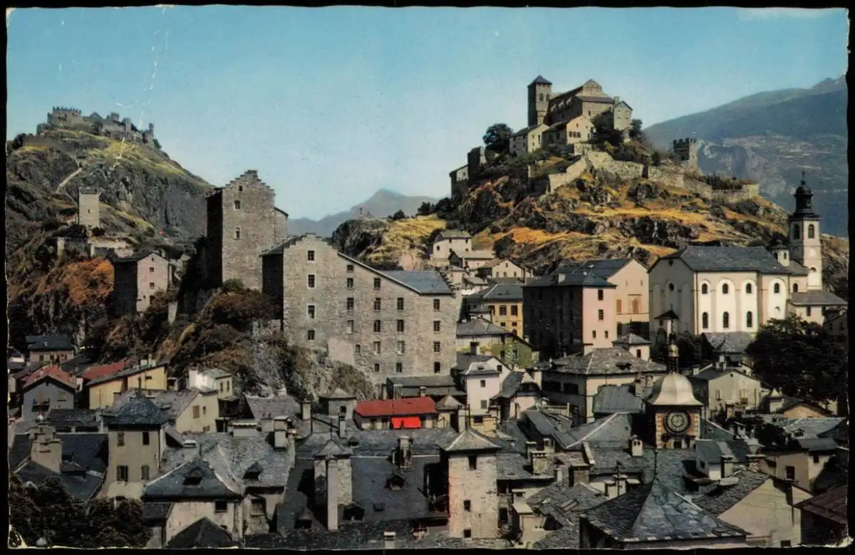Sion Sitten Vue générale avec le Château de Tourbillon l'Eglise de Valère 1960