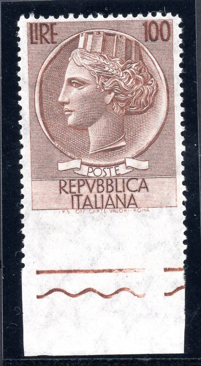 Siracusana Lire 100 stelle II dent. 13,1/4 nicht gezahnt. Unten Vollgummi - Syrakus Lire 100 Sterne II Verzahnung 13,1/4 Nr. 785/Ic unten ungezähnt b. von f. integral - Kat. euro 600 Cod. 645/13
