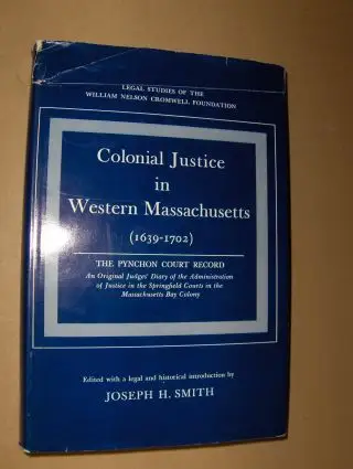 Smith (Edited + Introd.), Joseph H: Colonial Justice in Western Massachusetts (1639-1702) *. THE PYNCHON COURT RECORD An Original Judges` diary of the Administration of Justice in the Springfield Courts in the Massachusetts Bay Colony.